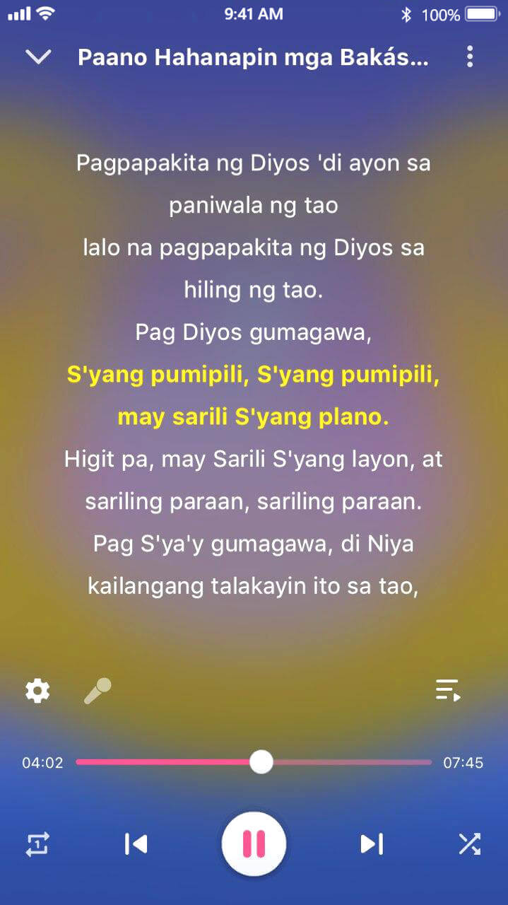 Sa kaunting pag-tap lamang sa imahe ng record sa music playing screen, makikita na ang mga titik.